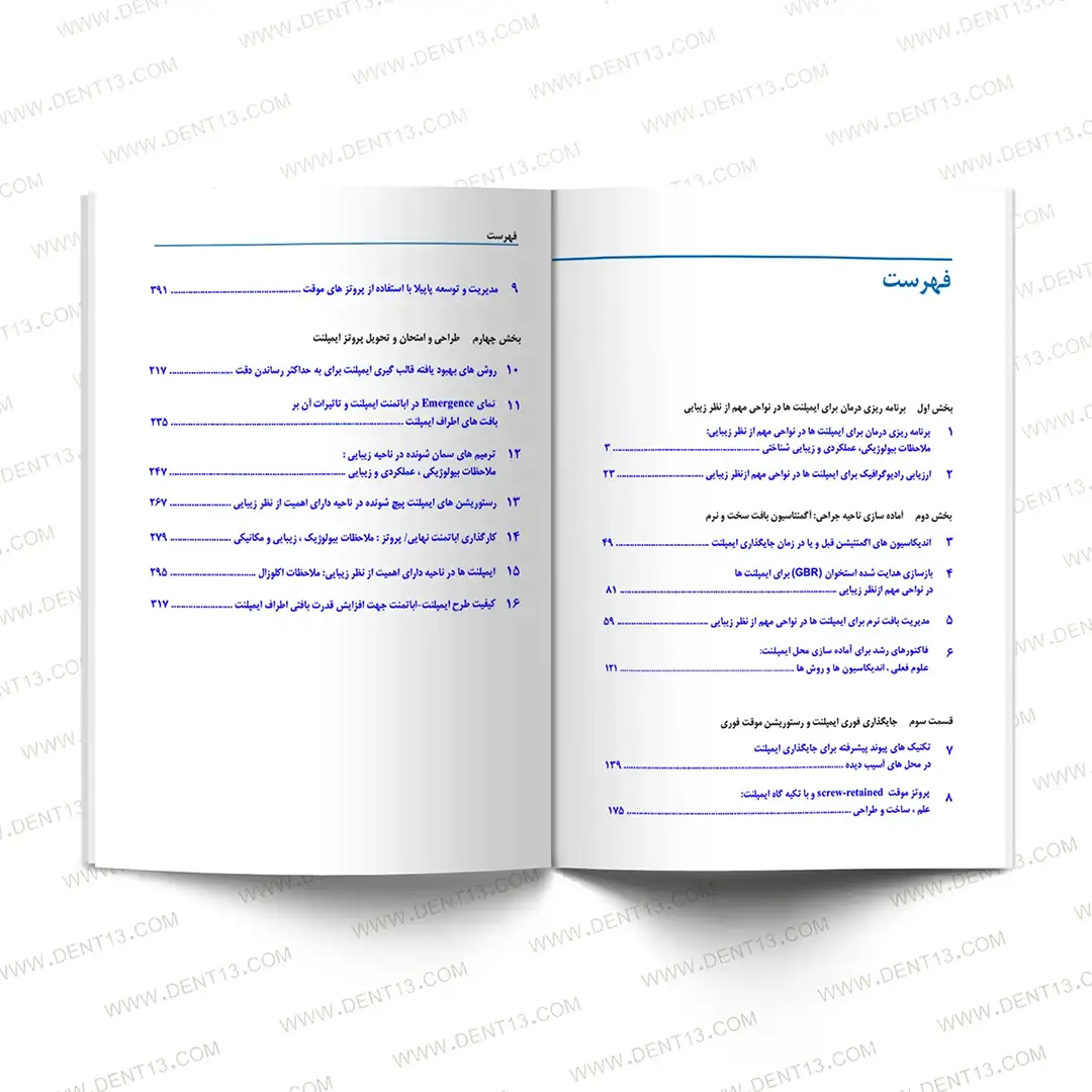 کتاب حاضر، به‌عنوان یک منبع جامع و کاربردی، به بررسی چالش‌برانگیزترین بخش درمان‌های ایمپلنت یعنی ناحیه قدامی فک بالا می‌پردازد. ناحیه‌ای که به دلیل حساسیت‌های زیبایی‌شناختی، آناتومی پیچیده و انتظارات بالای بیماران، نیازمند دقت علمی، تصمیم‌گیری درست و اجرای هنرمندانه است.