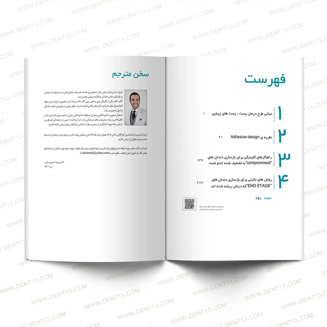 این کتاب تخصصی، به بررسی دقیق و کاربردیِ بازسازی فضای بینریشهای در دندانهای چندریشهای اختصاص دارد، با تمرکز ویژه بر استفاده از پستهای زیبایی در نواحی قدامی و خلفی.
